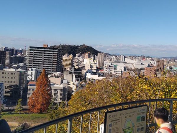 道後公園は湯築城の跡地でもあり、視点の違いによる眺望景観の違いを実感できます。公園の入り口あたりでは全く松山城は見えないのですが、7分ほど歩いて展望台まで行くとはっきりと松山城を見ることができました!街の景色と共にこのように遠くから松山城を見てみるのも、新鮮で良かったです♪