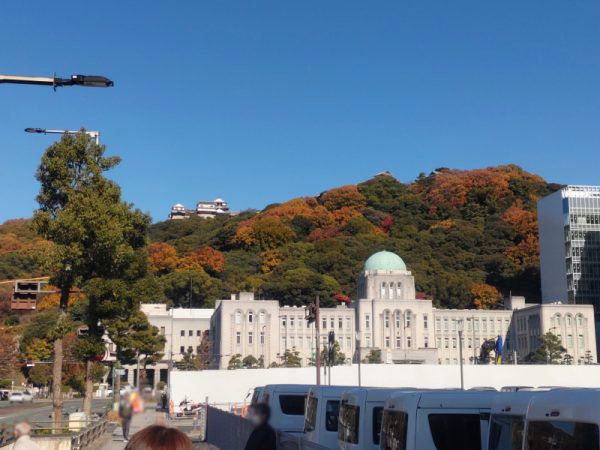 松山城、愛媛県庁、紅葉が一緒になった景観、圧倒されます