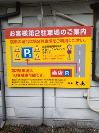 駐車場は店の前に4台、第2駐車場に10台となっています。