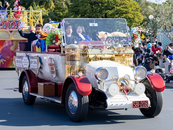 東京ディズニーリゾート・アンバサリマウジンには、2026-2027年 東京ディズニーリゾート・アンバサダーの亀田 真吾(かめだ しんご)さんと、濱中 ひかる(はまなか ひかる)さんが同乗。