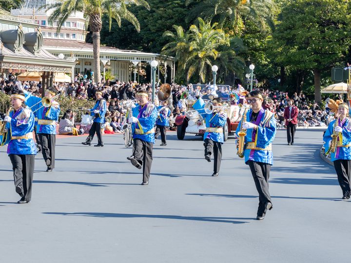 お正月ならではの装飾が施されたフロートやリマウジン、そして華やかな衣装の東京ディズニーランド・バンドがパレードルートを行進し、新年の幕開けを盛り上げます。