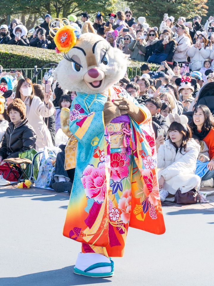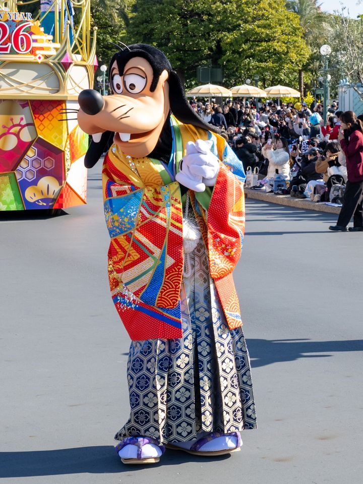 パレードルートでは、和服姿のミッキーマウスやディズニーの仲間たちが、新年の挨拶にやってくる「ニューイヤーズ・グリーティング」が公演されています。