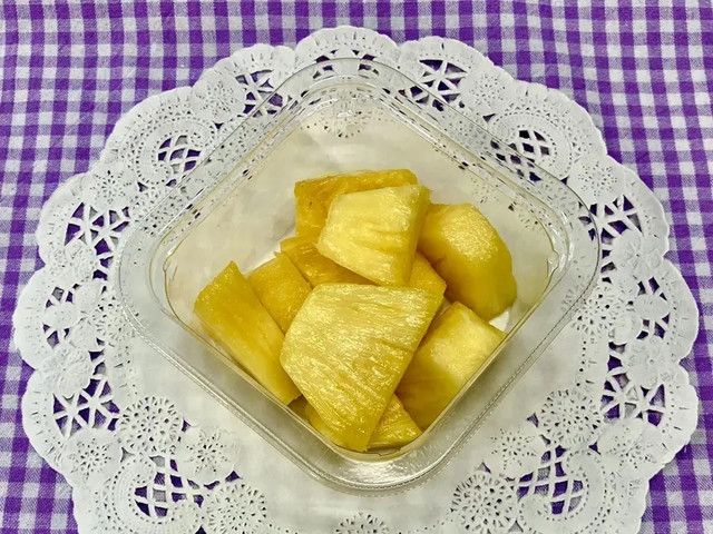 ほどよい酸味と甘みのあるパイナップルが手軽に食べられる商品です。 宮崎・鹿児島で販売