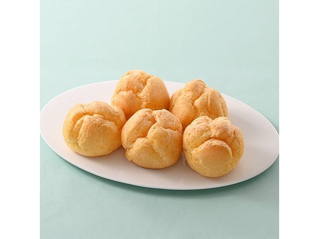 北海道産生クリームをブレンドしたホイップクリームと、バニラ感のあるカスタードクリームのシュークリームです。食べやすいサイズの5個入りです。