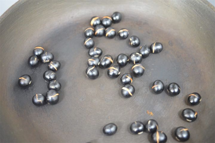 黒豆は、鉄フライパンまたはコーティングがはがれたフライパンで炒ると黒々と仕上がりますよ。