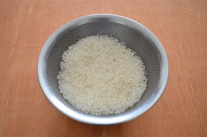 2. 米は洗ってざるに上げ、30分ほどおく。