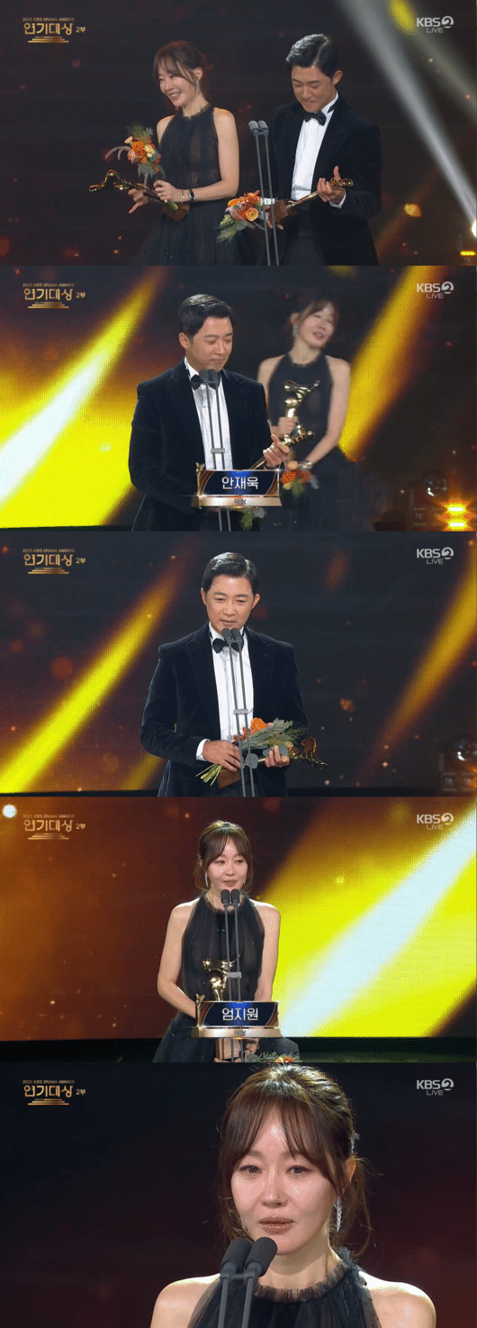 12月31日、「2025 KBS演技大賞」が生放送で行われたなか、大賞に輝いたのはドラマ『トクスリ五兄弟をお願い!』(原題)の俳優アン・ジェウクとオム・ジウォンだった。