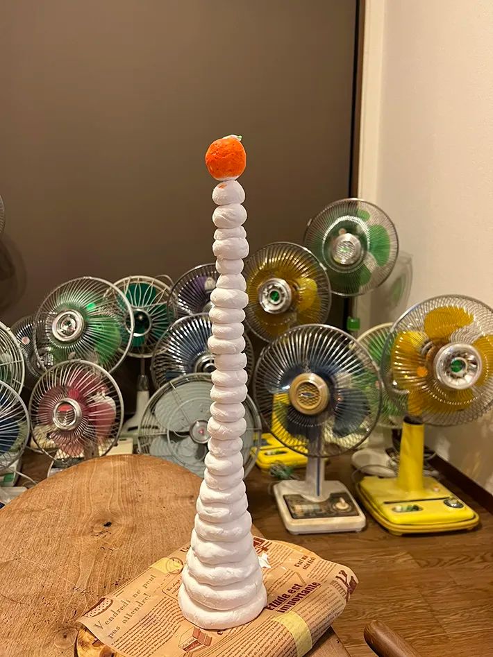 紙粘土で作った鏡餅に、称賛の声 「扇風機が気になる」のコメントも