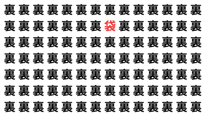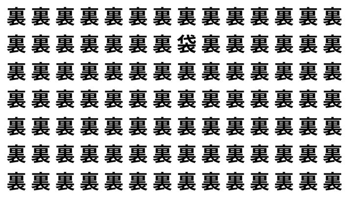 たくさんの「裏」の中に、よく似た別の漢字が1文字だけ隠れています。