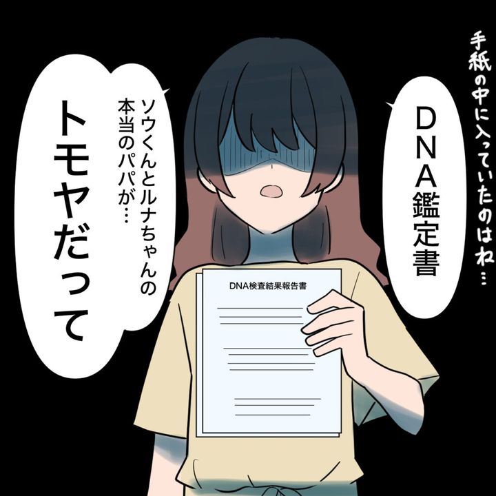 「手紙の中に入っていたのはね・・DNA鑑定書。ソウくんとルナちゃんの本当のパパが・・トモヤだって」そう淡々と話すと、