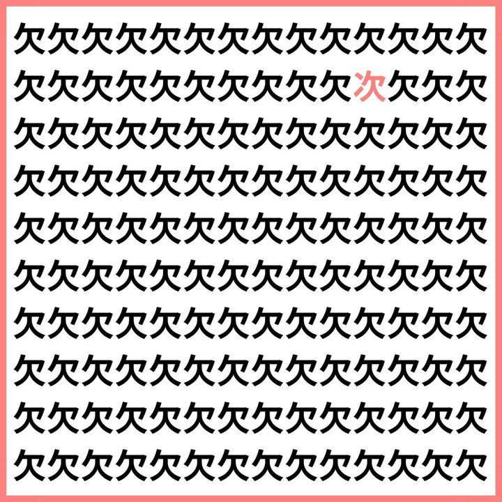 たくさんの「欠」の中に、1文字だけ違う漢字が混ざっています。