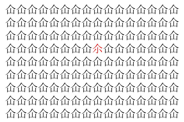 画像の中には、「仚」という漢字が縦に9行、横に16個並んでいます。 全部で144個となりますが・・・、そのうち1つは「異なる漢字」となってますよ!!