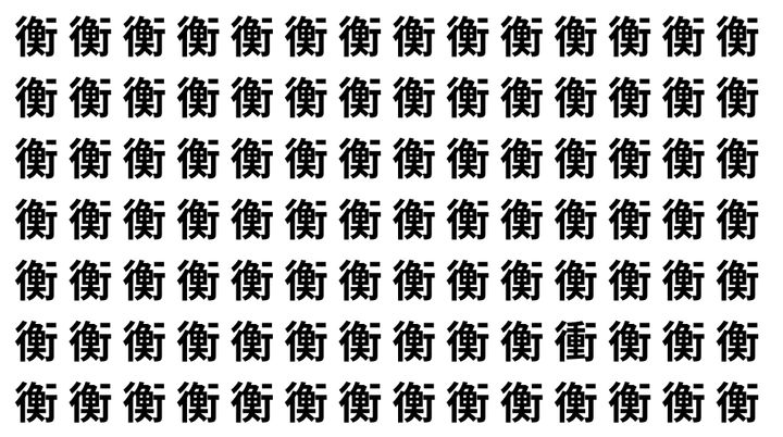 たくさんの「衡」の中に、よく似た別の漢字が1文字だけ隠れています。