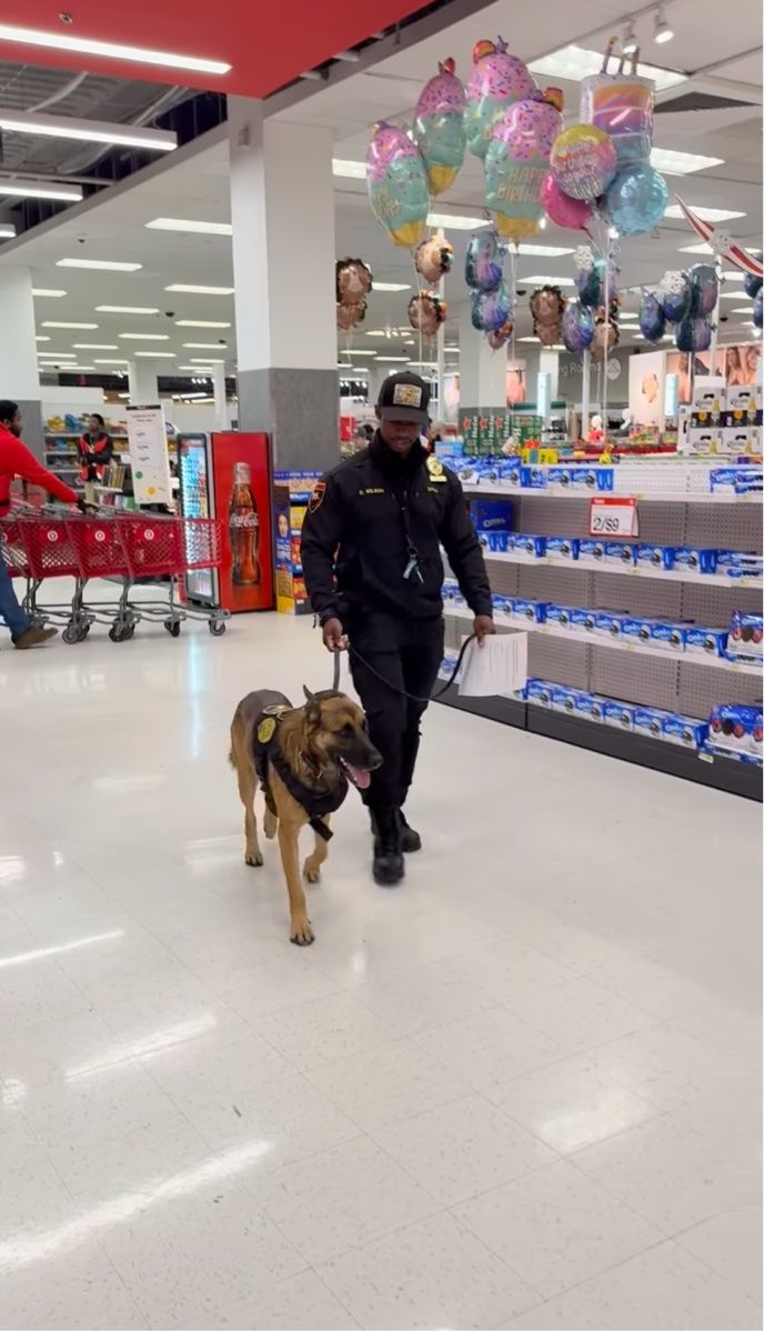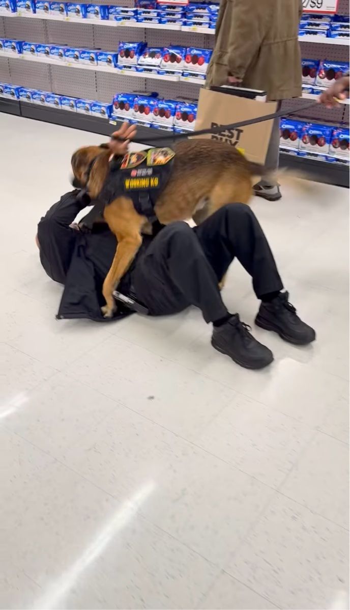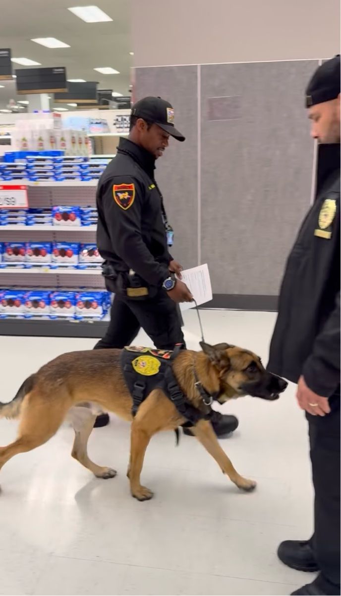 アメリカ・ニューヨーク州ブルックリンのとある店舗施設で撮影されたこちらの動画。 そこには、警備員とともに店内の巡回を行う頼もしい警備犬の姿がありました。