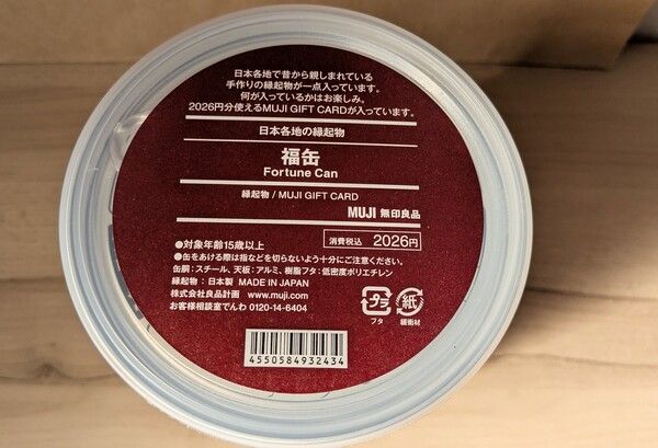 MUJI GIFT CARD 1枚(2,026円分)が入っているので縁起物は実質無料ということになります。