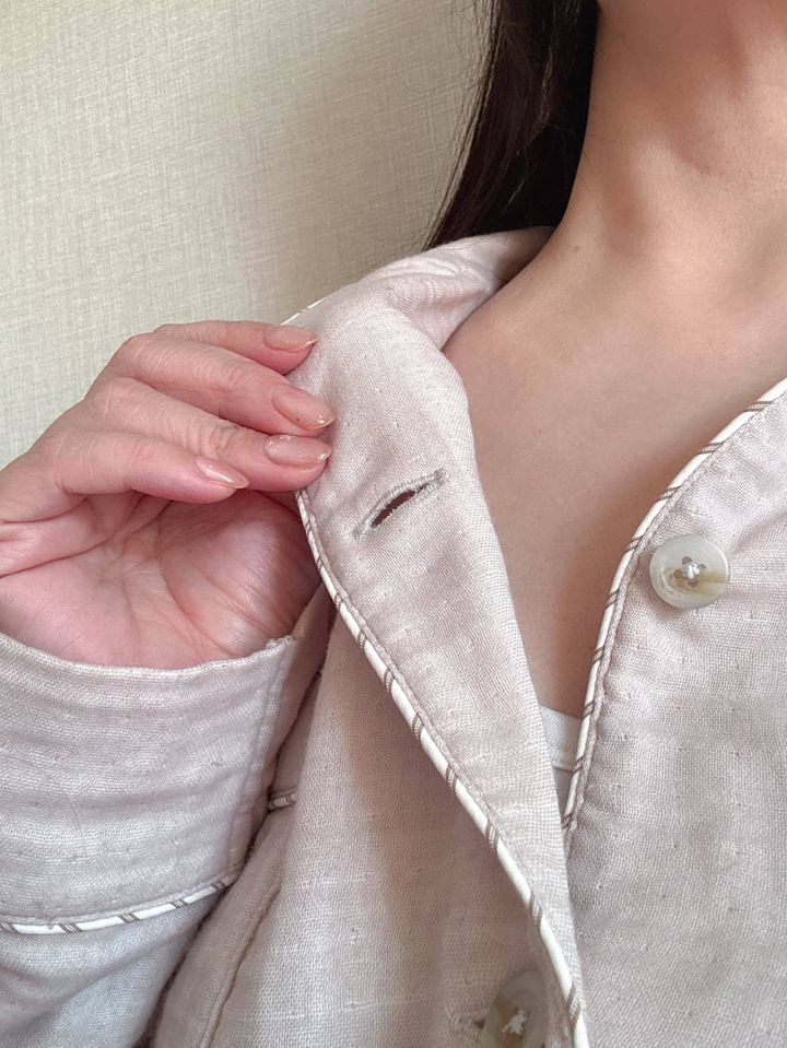 くたっと柔らかい生地なので、首との摩擦が気になって起きてしまうこともなく、よく眠れたように思います。パイピングも可愛くてお気に入り。