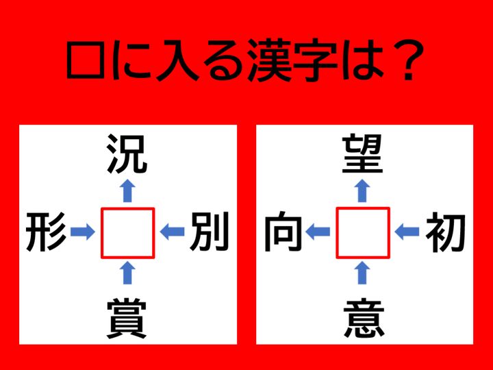 【漢字パズル】脳トレに挑戦! □況、形□、賞□、別□、に入る漢字は何?