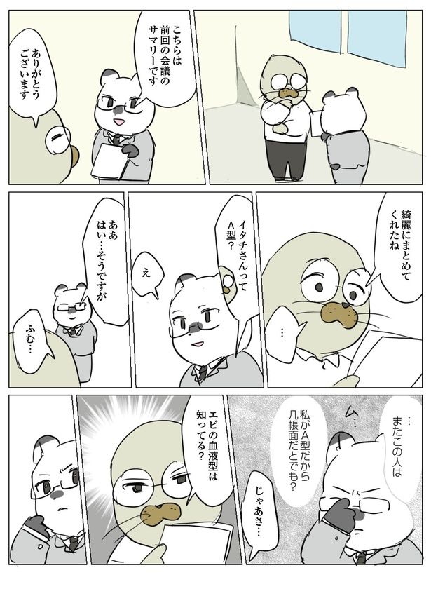 3. 「エビの血液型は?」部長の妙な問いかけの意味は…。ネットで調べると衝撃の答えが!/働く!くよくよ犬⑲