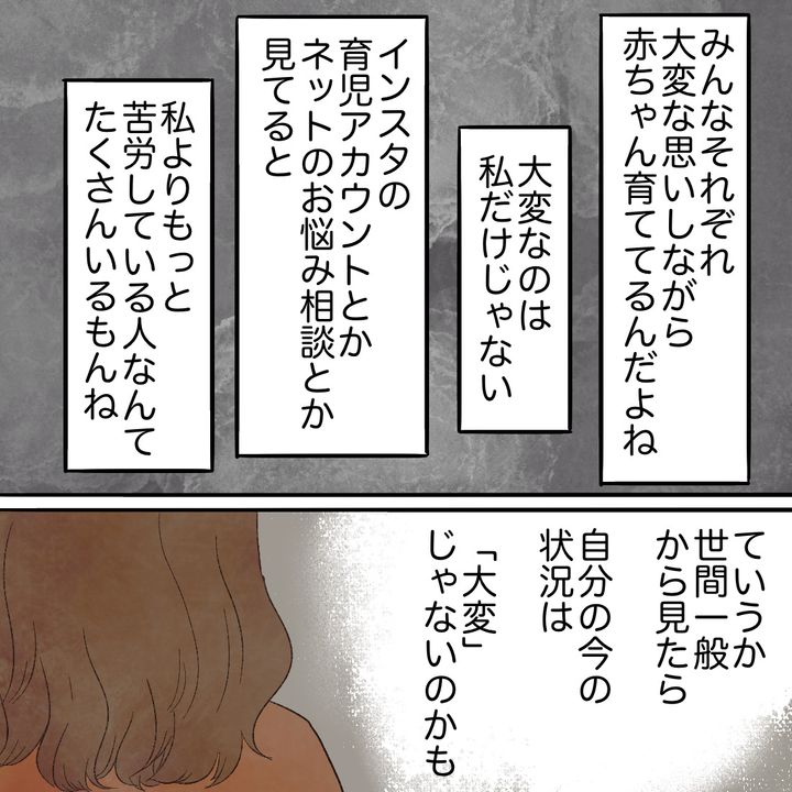 今だったら「いやいや大変さなんて人それぞれだから!」と思えるけど、当時は切羽詰まった状態で「これぐらいでへこたれてちゃダメなんだ」と自分を責めてしまうのでした。