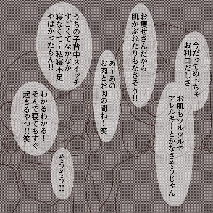 そんな中、遊びに来た友人からメメを「将来モデル体型確定じゃん」と言われたことも「ちゃんと育児していない」と言われているように感じてしまうのだった。