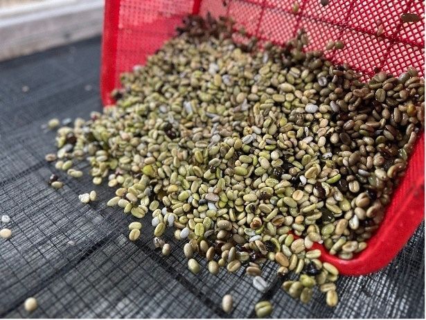 「スマトラでは、“スマトラ式(半水洗式)”といわれる伝統的な方法で行われています。ほかの加工法と異なり、収穫後に加工場へ運ばれるのではなく、小規模農家が自ら手動のハンドパルパー(脱穀機のようなもの)などで果肉を除去し、豆を半乾燥状態まで仕上げているんです」