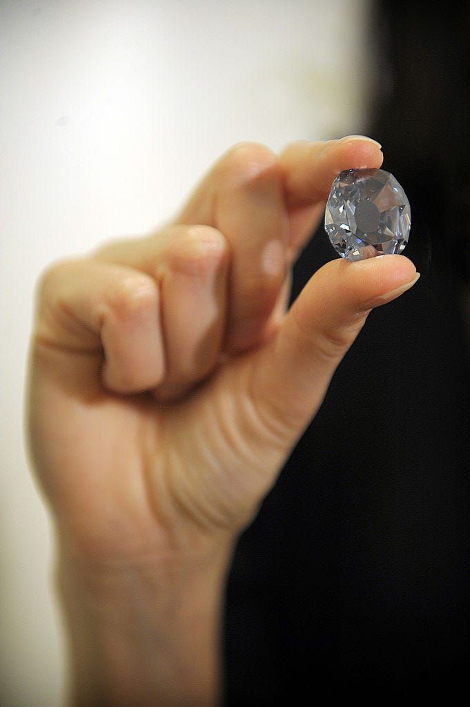 サザビーズによると、これまでにオークションに出品された宝石のなかで、1カラットあたりの価格が史上最高額を記録したのが、このブルーダイヤモンド。約4840万ドル(約75億円)で落札されています。