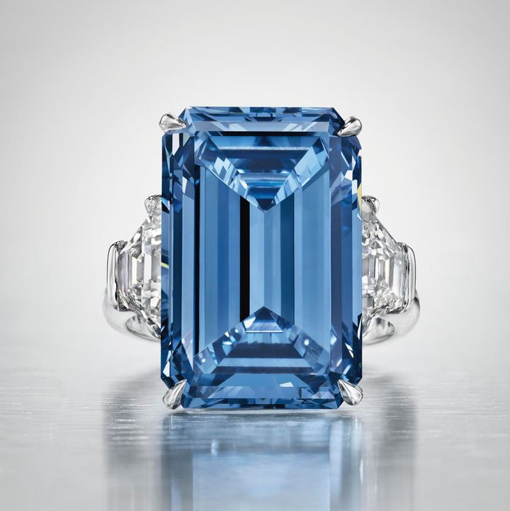 ダイヤモンドディーラーとして著名なフィリップ・オッペンハイマーが妻のために購入し、所有していた14.62カラットのこのブルーダイヤモンドは、およそ5750万ドル(約89億円)の値がつけられています。