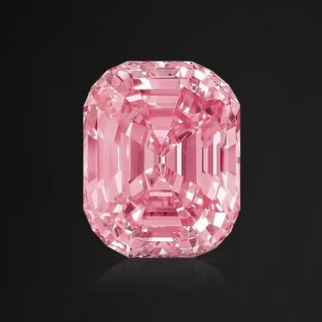米国宝石学会(GIA)は、「ファンシーカラー」のダイヤモンドのなかでも特に色が濃く鮮やかな(グレードが最も高い)「ファンシー・ビビッド」のピンクダイヤモンドのなかで、“最大のもの”だと説明しています。