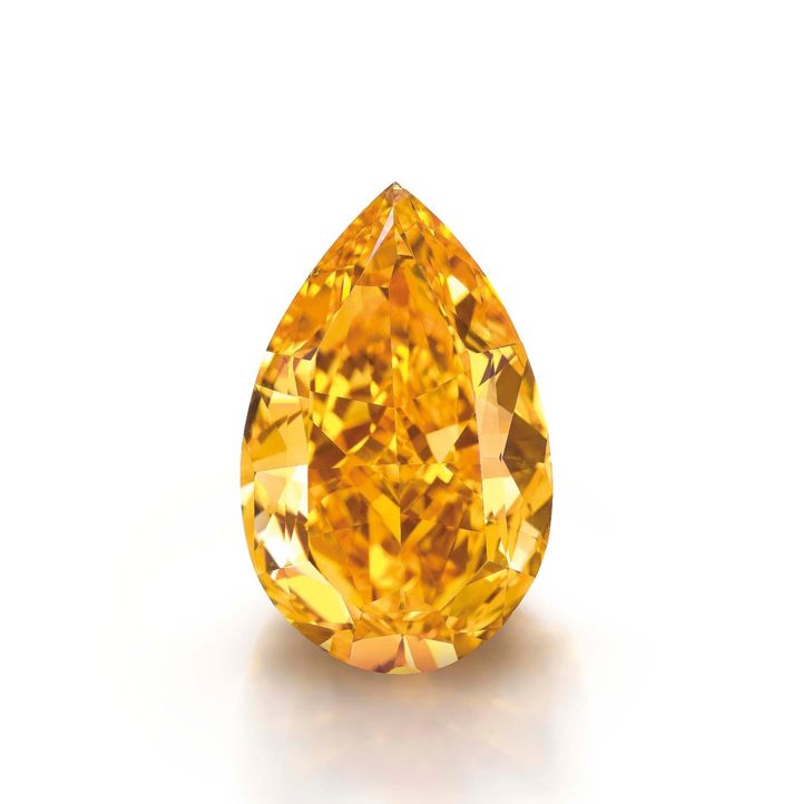 重さ14.82カラットは、これまでに発見されたなかで最大のオレンジダイヤモンド。カラーグレードは最高の「ファンシー・ビビッド」です。