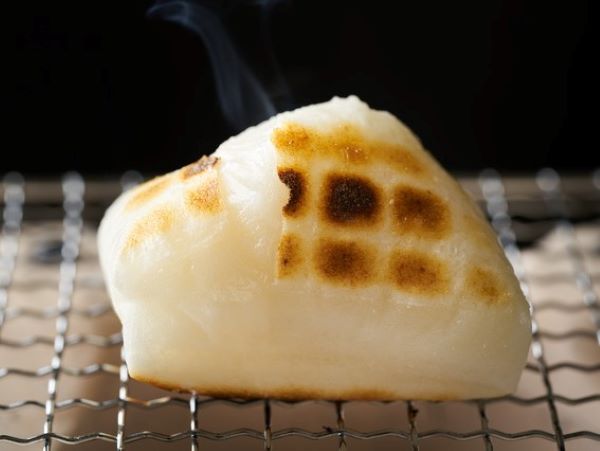 成型したらカリっと焼きます。レシピでは味つけがされていないので、表面に少し醤油を塗って焼いてみました。少し焦げた醤油が香ばしく、外側はカリカリ、中はモチモチと理想的!