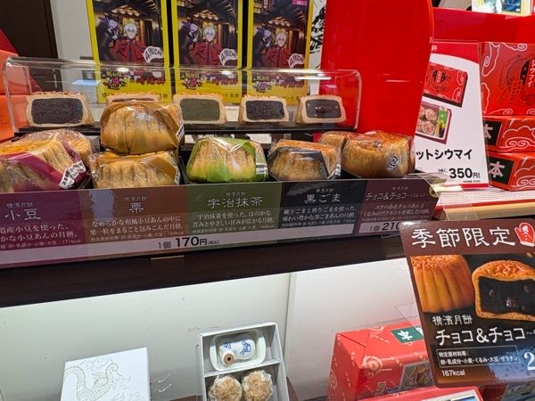 セットでもバラでも購入可。人気のごまと栗をいただきまーす。お家で月餅パーティーだね。