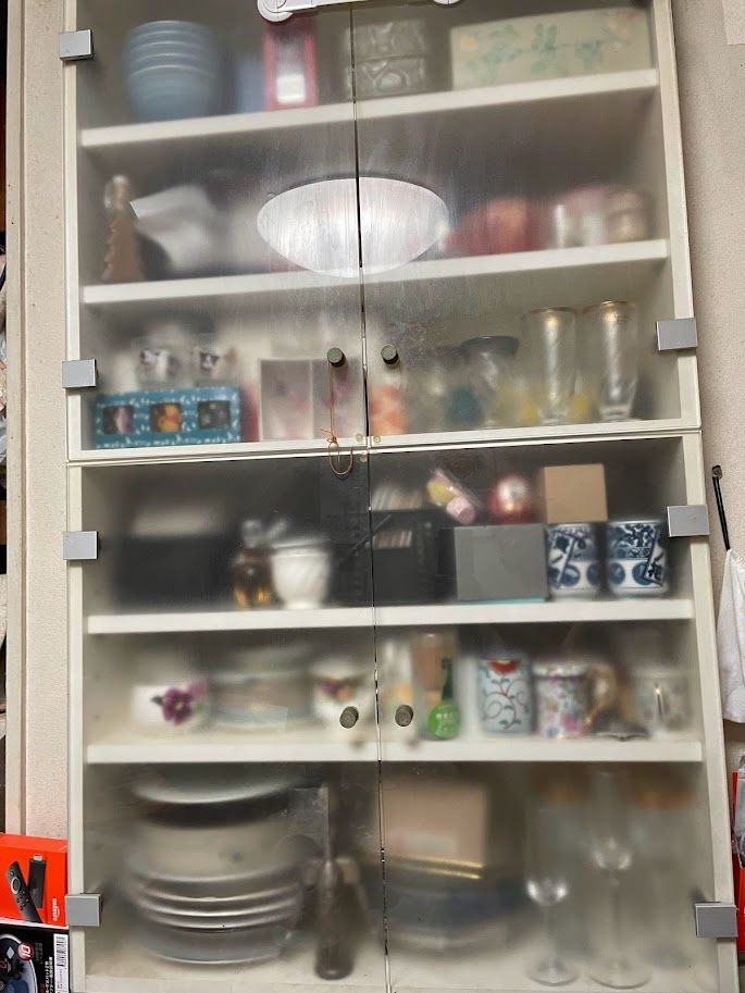 1回目の断捨離当時の食器棚。詰め込みすぎで棚板が歪んでいた。