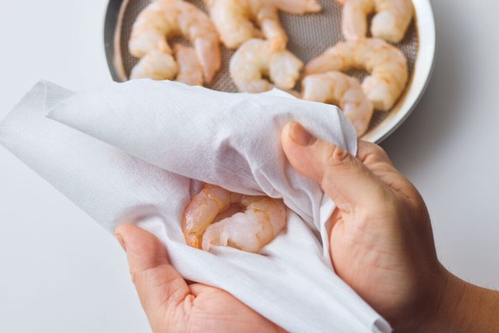 さわってみてえびの中心部が溶けていればOK! 表面に残った氷は手で取って。