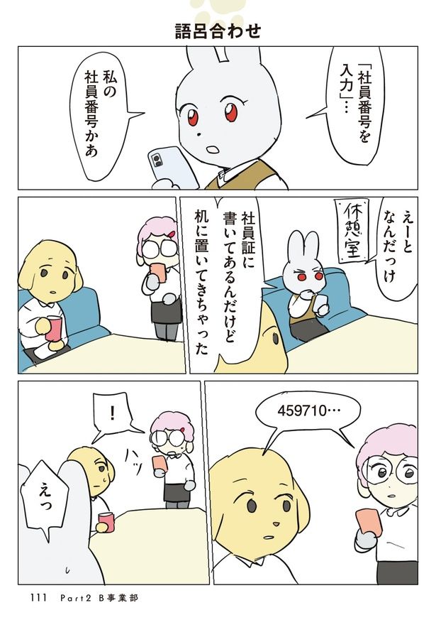 同僚の社員番号を即答したふたり。変な語呂合わせで覚えてたなんて言えない…/働く!くよくよ犬2⑮