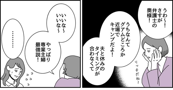 ノゾミは専業主婦である私を羨ましいという様子で「いいな~」を連呼してきます。話題をかえるように、おすすめのパックをノゾミに勧めると……。