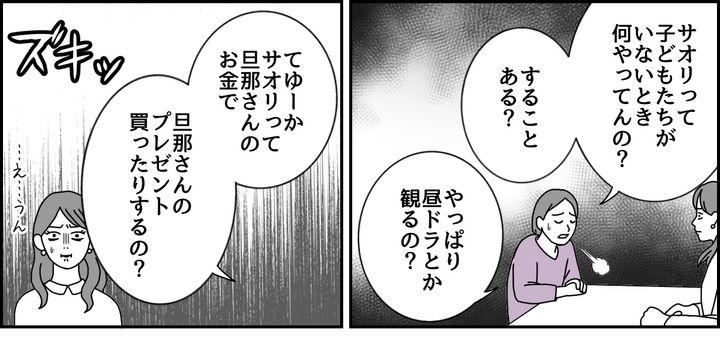 私(サオリ)は夫と3人の子どもたち(小6・小3・年長)との5人暮らしをしています。夫は弁護士で多忙なため、私は専業主婦として家族を支えています。小学校からの親友であるノゾミは昔から努力家で、現在は市役所に勤めながら2人の子ども(小4と小1)を育てています。子どもたちも同年代ということもあり、私たちは今でも交流を重ねていました。しかしここ数年、ノゾミと会うことが少ししんどく感じてしまうようになったのです。それは私たちの価値観が変わってしまったからでしょうか。