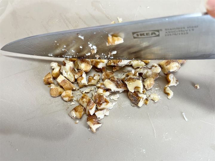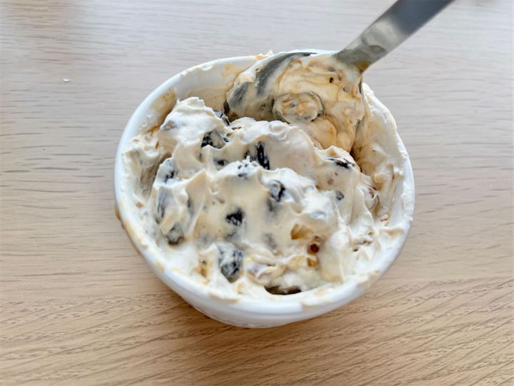 さらに、レーズンの甘酸っぱさとくるみのザクザク食感が加わって、ひと口ごとに印象が変化します。