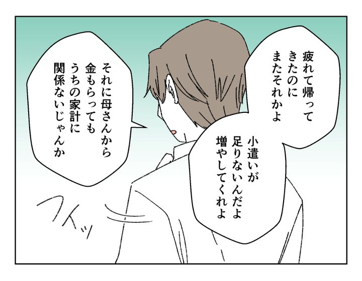 夫婦のお小遣い事情は、家庭によってさまざまです。毎月決まった額をお小遣いにするご家庭もあれば、収入から一定額を家計に入れ、残りを自由に使うというご家庭もあるでしょう。お小遣いのかたちは本当にそれぞれ。今回は、そんな「夫婦のお小遣い」をめぐるお話です。主人公は、夫がお小遣いとは別に受けている“ある援助”がどうしても気に入らないようで……!?
