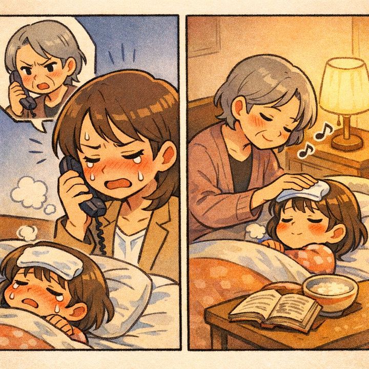 あんなに拒絶していた義母が、娘の額に乗せたタオルを何度も取り替え、優しく背中をさすっていました。