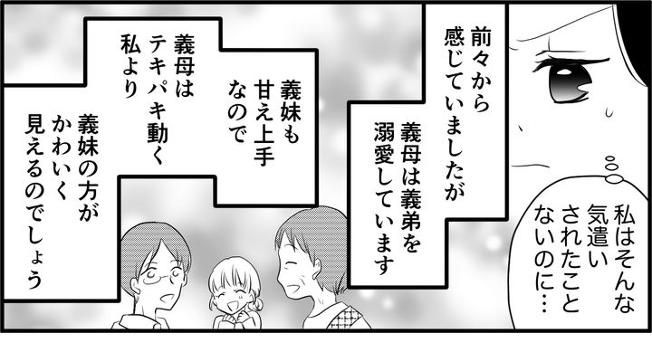 義母は義弟を溺愛しています。それは私も前々から知っていましたが、ここまでだとは思いませんでした。義妹も甘え上手なので、私より義妹の方がかわいく見えるのでしょう。まるで義母と私がもてなす側で、義弟一家はお客様です。なんだか私は損をしているような気分になりました。