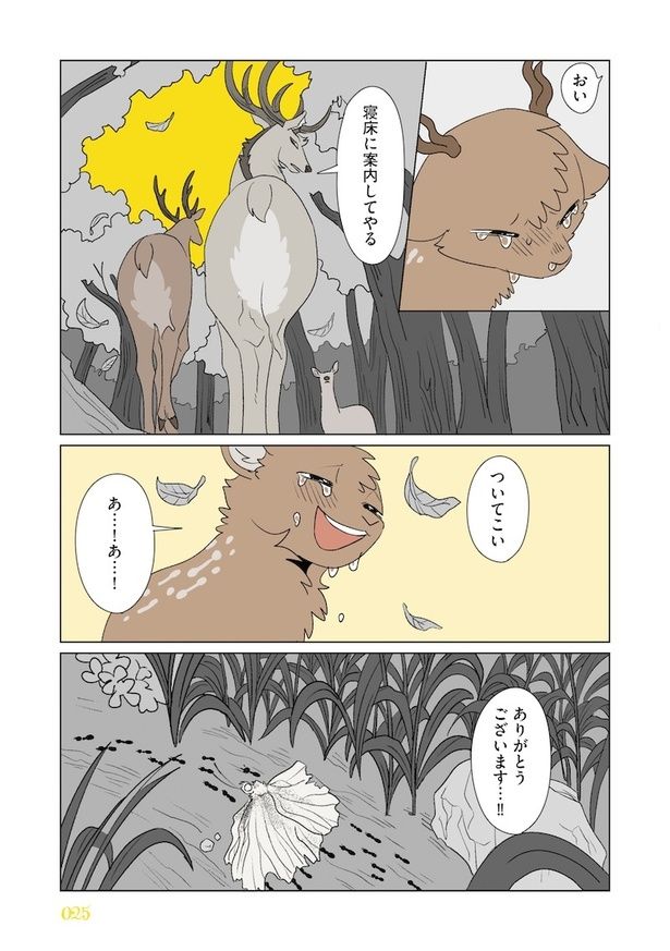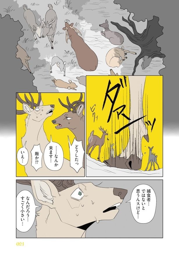 群れを追い出された発育不良のシカ・しのさきは、森で命を落としかけたところを、同じく群れを追放されたオオカミ・みなせに救われる。捕食者と被食者という相容れぬ関係でありながら、「のけもの」同士で共同生活を始め、時に衝突し、過酷な試練に翻弄されながらも、互いに支え合い絆を深めていく。種を超えて寄り添う、残酷で愛おしい日々の物語『ふたりのけもの』をお届けします!
