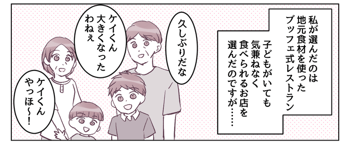 カホ(仮名)さんは実家の近くで暮らしています。都会で家庭を持った弟ショウ(仮名)さんが、家族で久しぶりに帰省してきました。義妹のカレン(仮名)さんは、いわゆる「お嬢様育ち」なのだとか。駅まで迎えに行き、両親やカホさんの子たちとみんなで人気のビュッフェ式レストランへ行きました。カレン(仮名)さんと甥のケイ(仮名)くんにも楽しんでもらえたと思ったのですが……。