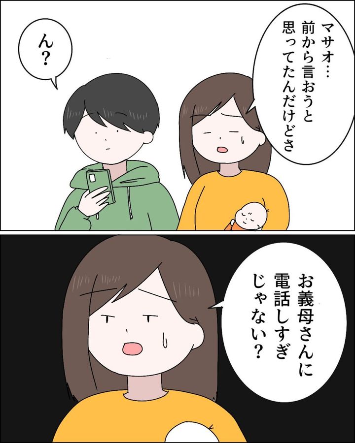 「マサオ・・前から言おうと思ってたんだけどさ、お義母さんに電話しすぎじゃない?」私はこれまで我慢していたことをマサオに伝えることにしました。