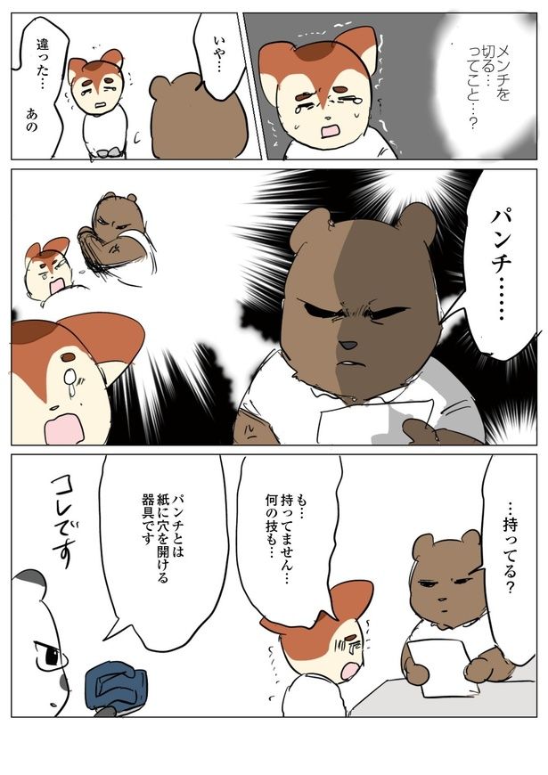 2. 強面な課長にビクビクする新入社員。「ミンチ?」「メンチ?」課長の言い間違いすら恐怖/働く!くよくよ犬⑳