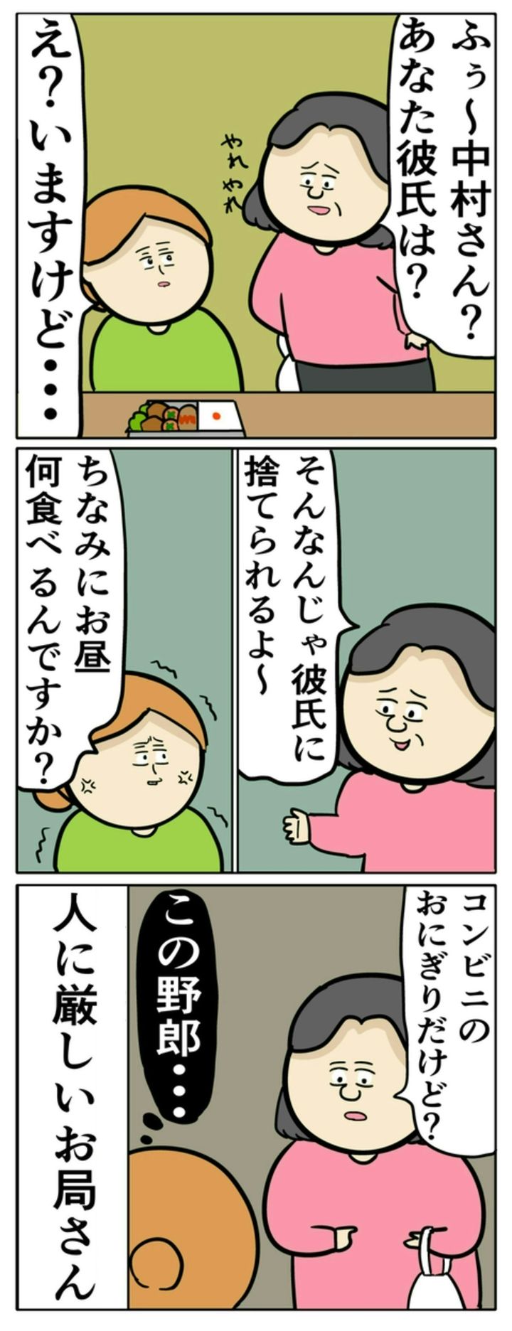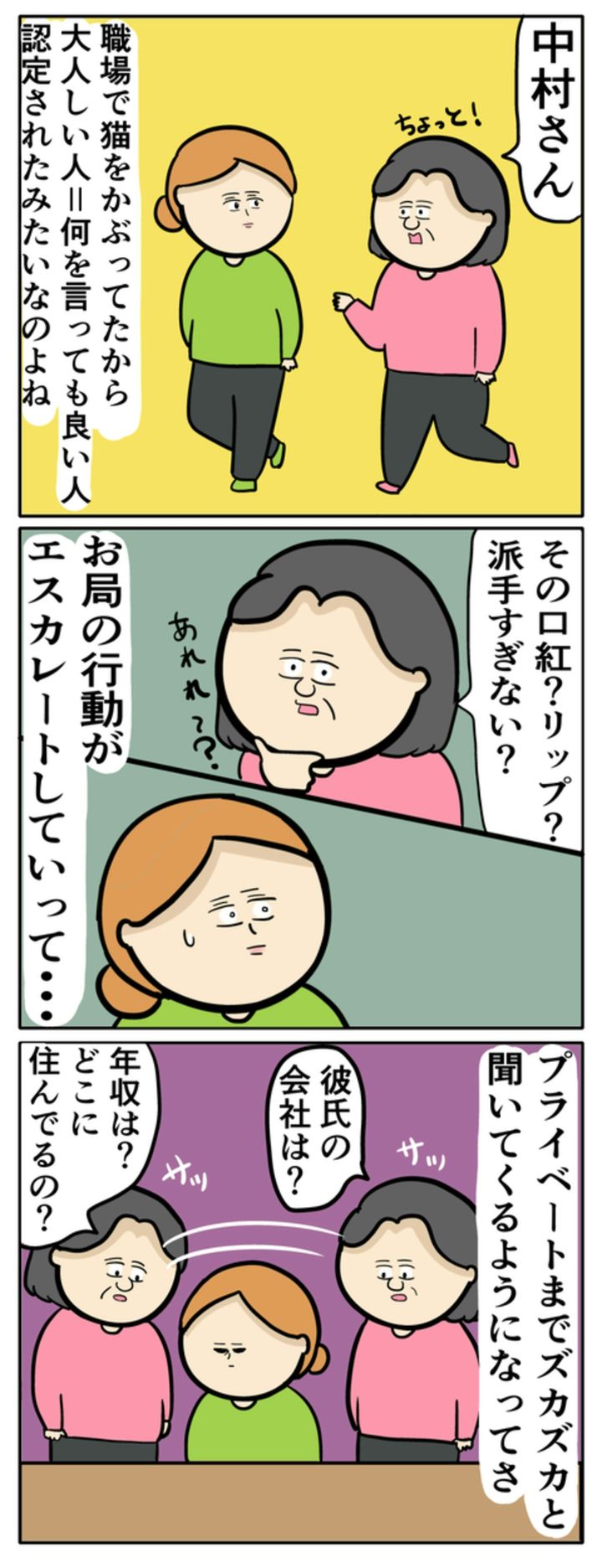 プライベートにずかずかと入り込んでくる人、厄介ですね。小言もエスカレートしていったため、中村さんは上司に相談。しかし、お局が上司にうまく取り入っていたようで、直訴は失敗に終わります…。