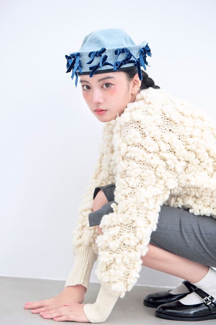 ニット¥49,500/ビリティス・ディセッタン(ビリティス)、パンツ¥13,750/レイ ビームス(レイ ビームス 新宿)、ハット¥35,200/ブランク(H3O ファッションビュロー)、ネックレス¥6,600/Carmelo(アンティローザ)、シューズ¥9,900/チャールズ&キース(CHARLES & KEITH JAPAN)、ソックス/スタイリスト私物