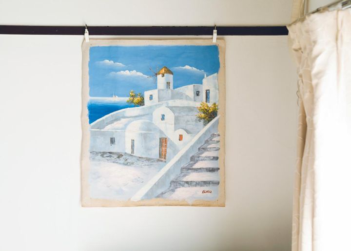 ポスターは20代後半に旅したギリシャの思い出の品。