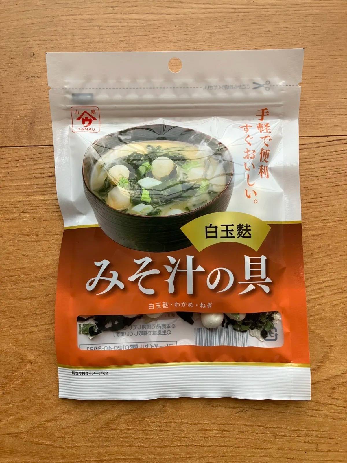 忙しいときに便利なのが、DAISO(ダイソー)の「魚の屋 白玉麩とわかめ みそ汁の具 12g」♪