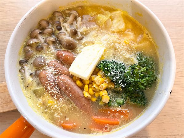 隠し味のみそが効いているので、いつものコーンスープとはちょっと違うような…?味に奥行きがあって、「お鍋」と「シチュー」の良いとこ取りのような満足感がありますよ♪