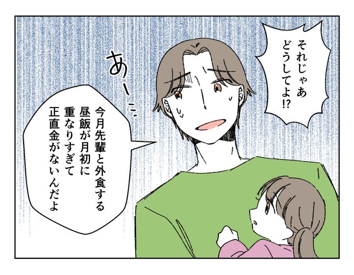 ユウノスケさん(30)は妻・アカネさん(30)と年少の娘さんの3人暮らしです。仕事はストレスも多く、外回りで体力も使う営業職。そんなユウノスケさんには、とある不満が。それは月々のお小遣いが少なすぎること。お付き合いの外食が多いにもかかわらず昼食代も含まれていて、ときには夕飯にお金を使わなければならなくなる日も。ストレス解消のタバコとビールは外せないため、1人のときは菓子パン生活なのだとか。お小遣いアップを要求したこともありましたが、怒られるので諦め気味だそうです。